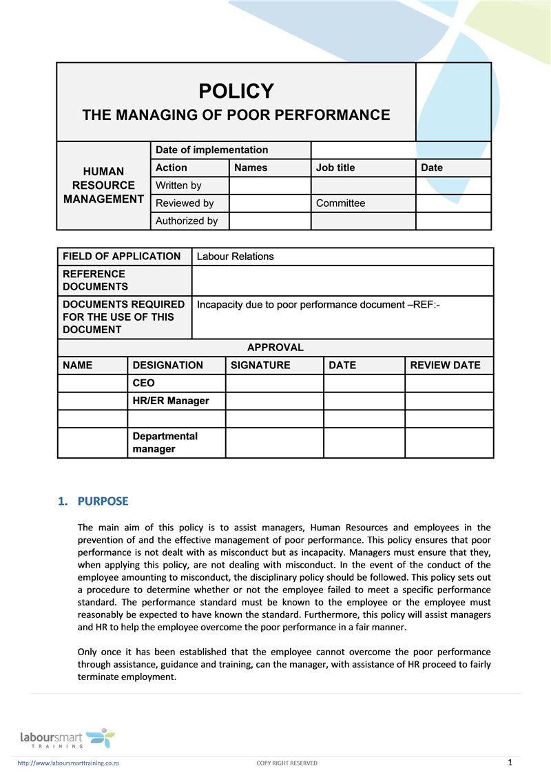 Policy The Managing Of Poor Performance, Document, Labour Law, South